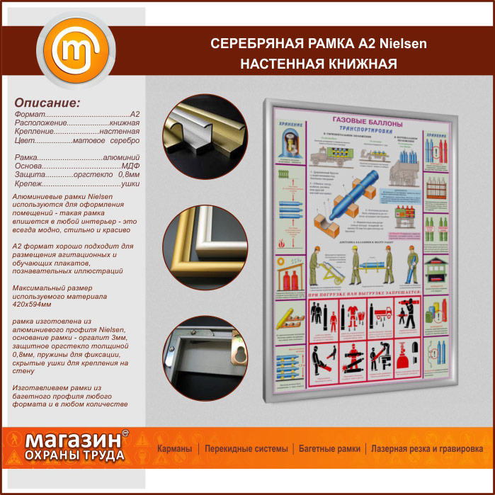 Багетная настенная рамка «Nielsen» А2 формата, книжная, матовое серебро в Новокузнецке купить