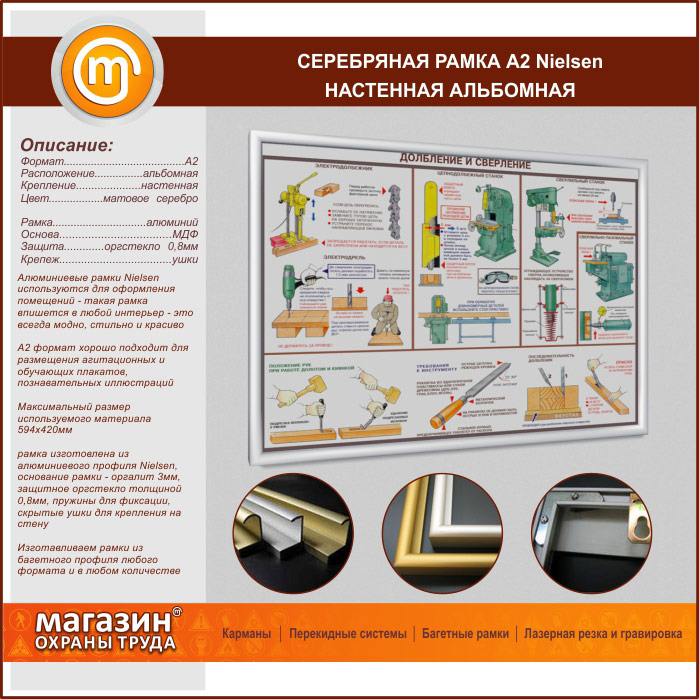 Багетная настенная рамка «Nielsen» А2 формата, альбомная, матовое серебро в Новокузнецке купить