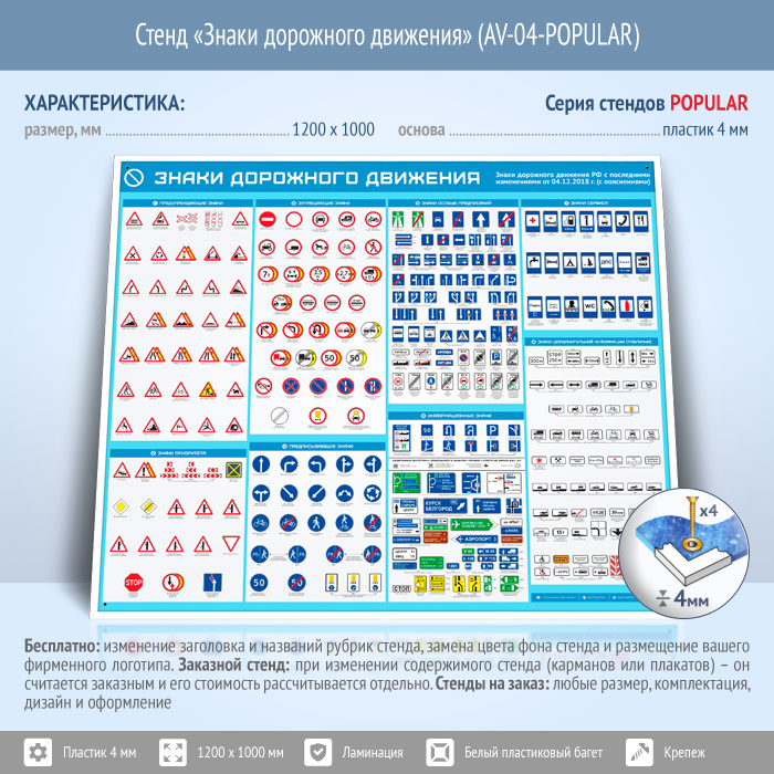 Стенд «Знаки дорожного движения» (AV-04-POPULAR) в Новокузнецке купить