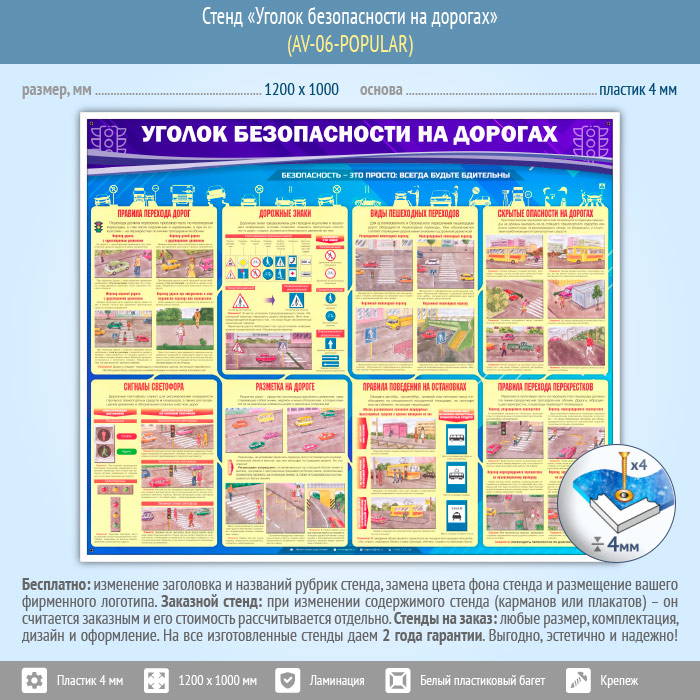 Стенд «Уголок безопасности на дорогах» (AV-06-POPULAR) в Новокузнецке купить