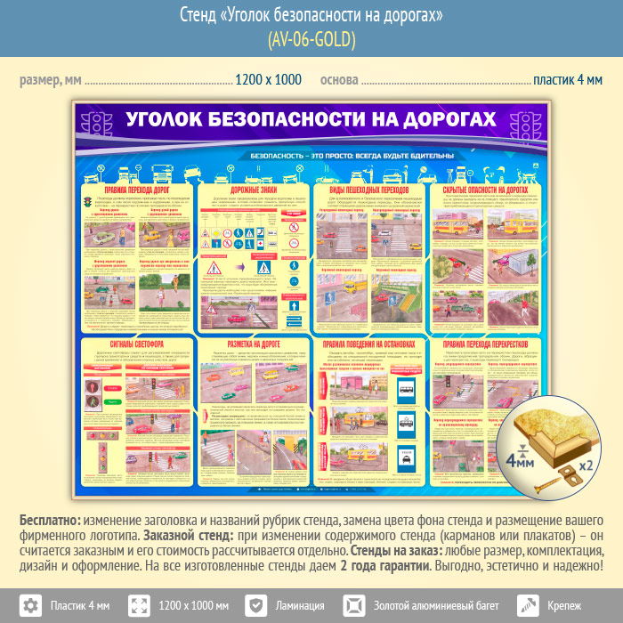 Стенд «Уголок безопасности на дорогах» (AV-06-GOLD) в Новокузнецке купить