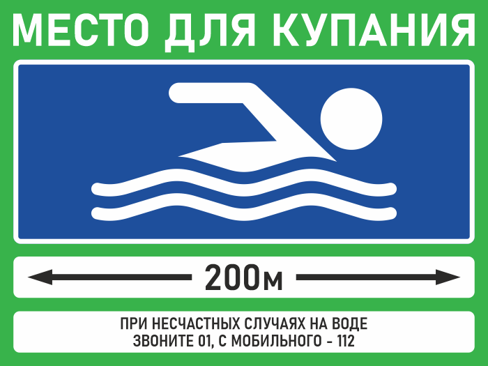 Знак «Место для купания», БВ-03 (пластик 4 мм, 400х300 мм) в Новокузнецке купить
