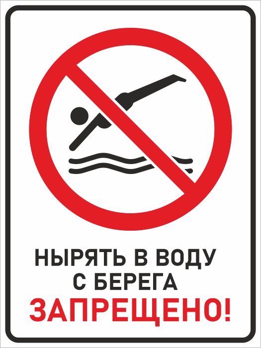 Знак «Нырять в воду с берега запрещено!», БВ-16 (пластик 2 мм, 300х400 мм) в Новокузнецке купить