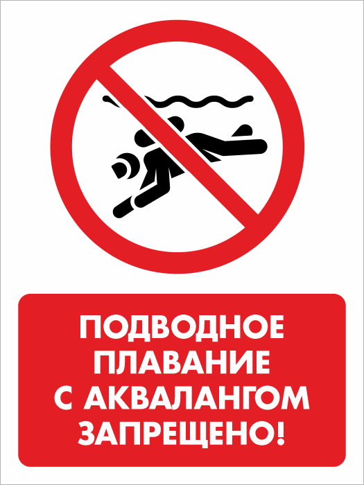 Знак «Подводное плавание с аквалангом запрещено!», БВ-38 (пластик 4 мм, 400х600 мм) в Новокузнецке купить