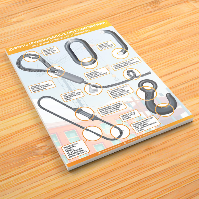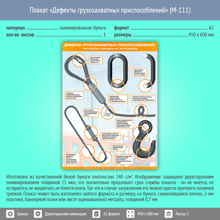 Плакат «Дефекты грузозахватных приспособлений» (М-111, ламинированная бумага, А2, 1 лист) в Новокузнецке купить