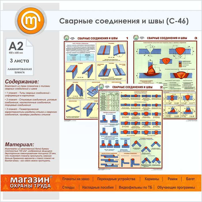 Плакаты «Сварные соединения и швы» (С-46, ламинированная бумага, А2, 3 листа) в Новокузнецке купить