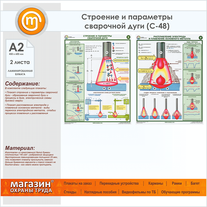 Плакаты «Строение и параметры сварочной дуги» (С-48, ламинированная бумага, А2, 2 листа) в Новокузнецке купить