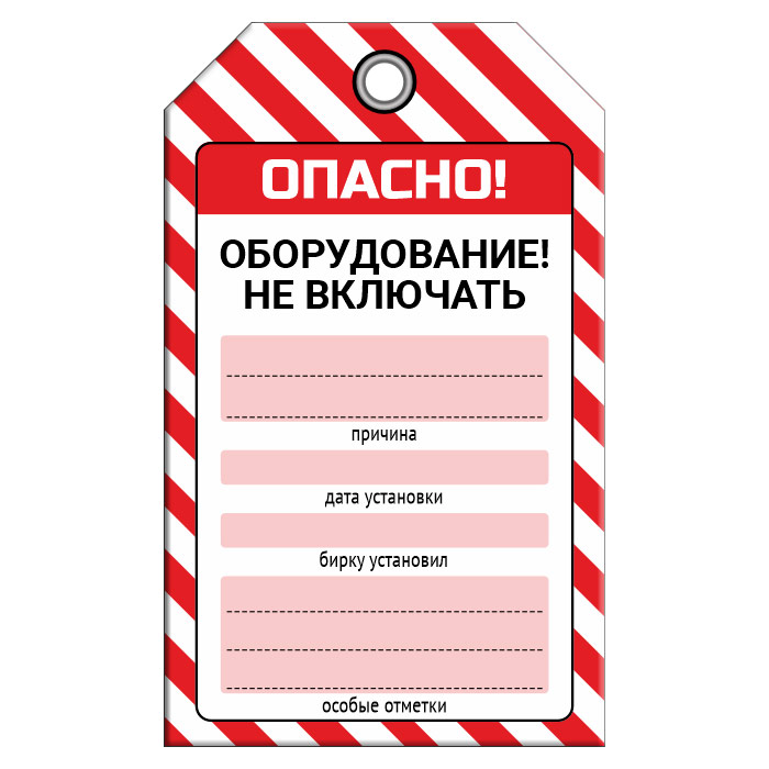 Бирка «ОБОРУДОВАНИЕ НЕ ВКЛЮЧАТЬ!» (1 шт., двусторонняя, пластик, 70х115 мм) в Новокузнецке купить