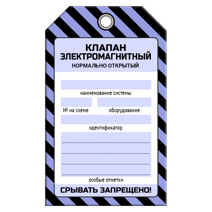 Бирка «КЛАПАН ЭЛЕКТРОМАГНИТНЫЙ НОРМАЛЬНО ОТКРЫТЫЙ» (1 шт., односторонняя, пластик, 70х115 мм) в Новокузнецке купить