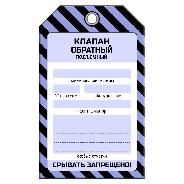 Бирка «КЛАПАН ОБРАТНЫЙ ПОДЪЕМНЫЙ» (1 шт., односторонняя, пластик, 70х115 мм) в Новокузнецке купить