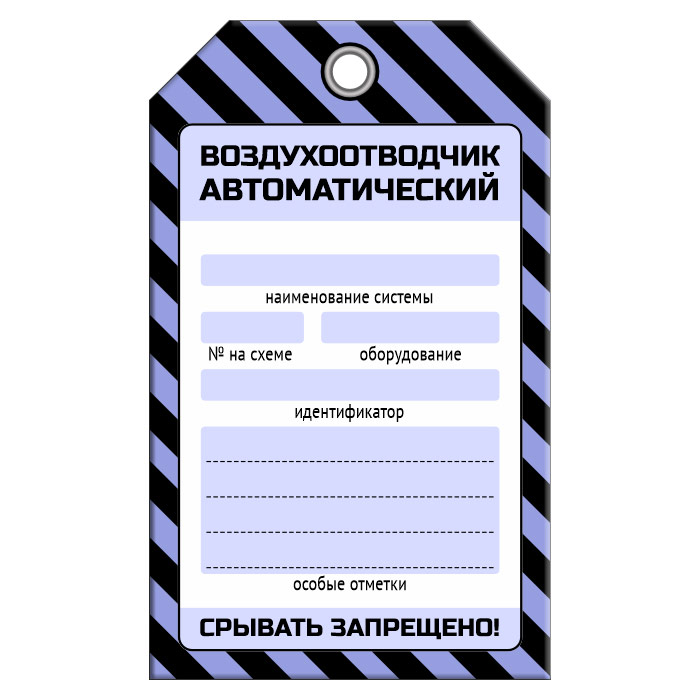 Бирка «ВОЗДУХООТВОДЧИК АВТОМАТИЧЕСКИЙ» (1 шт., односторонняя, пластик, 70х115 мм) в Новокузнецке купить