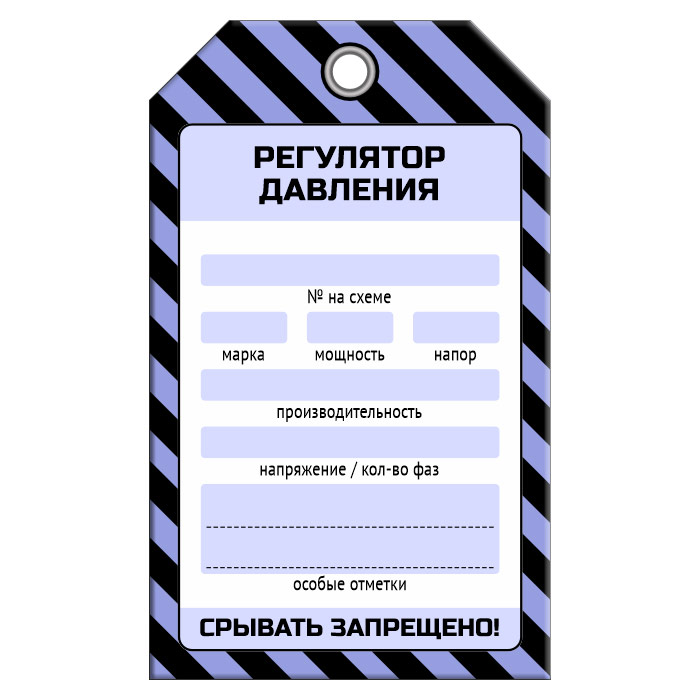 Бирка «РЕГУЛЯТОР ДАВЛЕНИЯ» (1 шт., односторонняя, пластик, 70х115 мм) в Новокузнецке купить