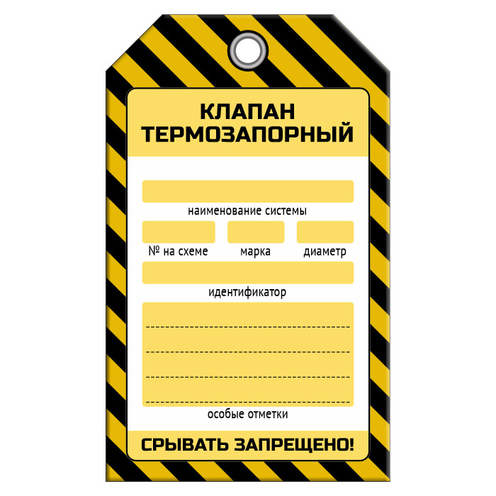 Бирка «КЛАПАН ТЕРМОЗАПОРНЫЙ» (1 шт., односторонняя, пластик, 70х115 мм) в Новокузнецке купить