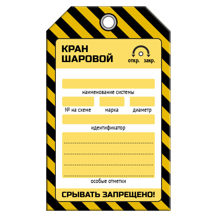 Бирка «КРАН ШАРОВОЙ» для газопровода (1 шт., односторонняя, пластик, 70х115 мм) в Новокузнецке купить