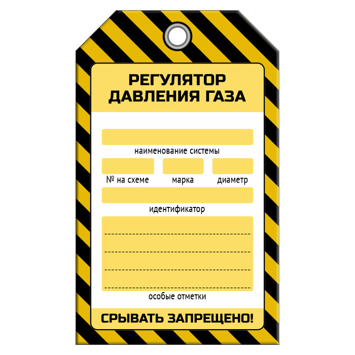 Бирка «РЕГУЛЯТОР ДАВЛЕНИЯ ГАЗА» (1 шт., односторонняя, пластик, 70х115 мм) в Новокузнецке купить
