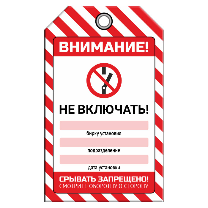 Бирка «НЕ ВКЛЮЧАТЬ!» (1 шт., двусторонняя, пластик, 70х115 мм) в Новокузнецке купить