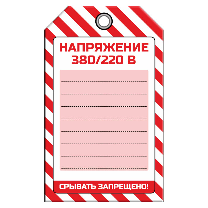Бирка «НАПРЯЖЕНИЕ 380/220 В» (1 шт., односторонняя, пластик, 70х115 мм) в Новокузнецке купить
