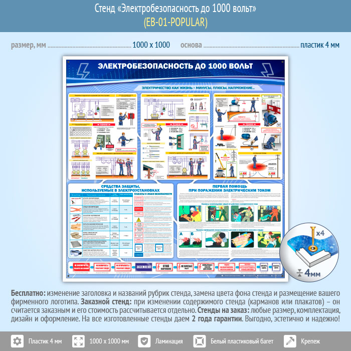 Стенд «Электробезопасность до 1000 вольт» (EB-01-POPULAR) в Новокузнецке купить
