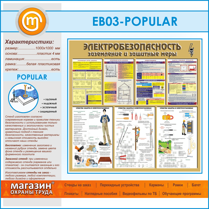 Стенд «Электробезопасность. Заземление и защитные меры» (EB-03-POPULAR) в Новокузнецке купить
