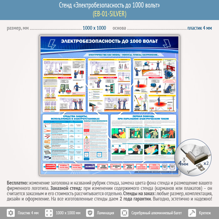 Стенд «Электробезопасность до 1000 вольт» (EB-01-SILVER) в Новокузнецке купить