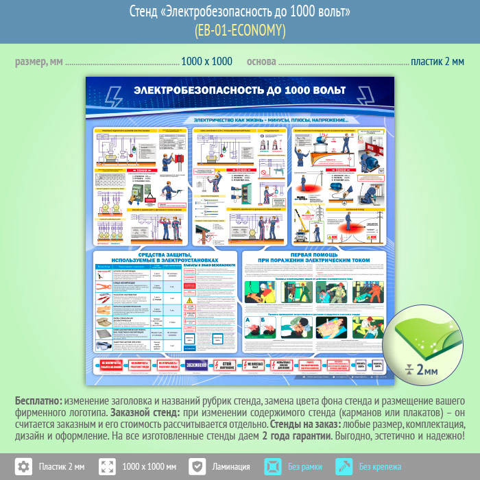 Стенд «Электробезопасность до 1000 вольт» (EB-01-ECONOMY) в Новокузнецке купить