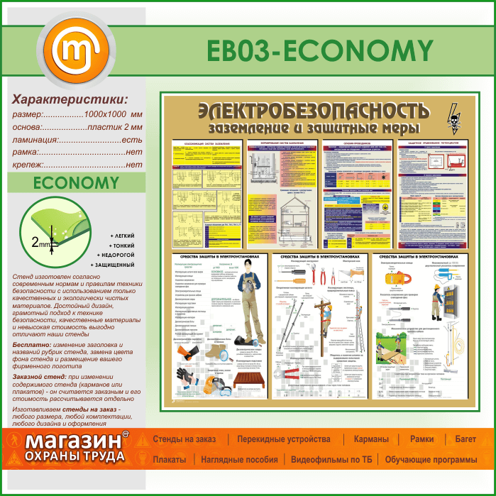 Стенд «Электробезопасность. Заземление и защитные меры» (EB-03-ECONOMY) в Новокузнецке купить