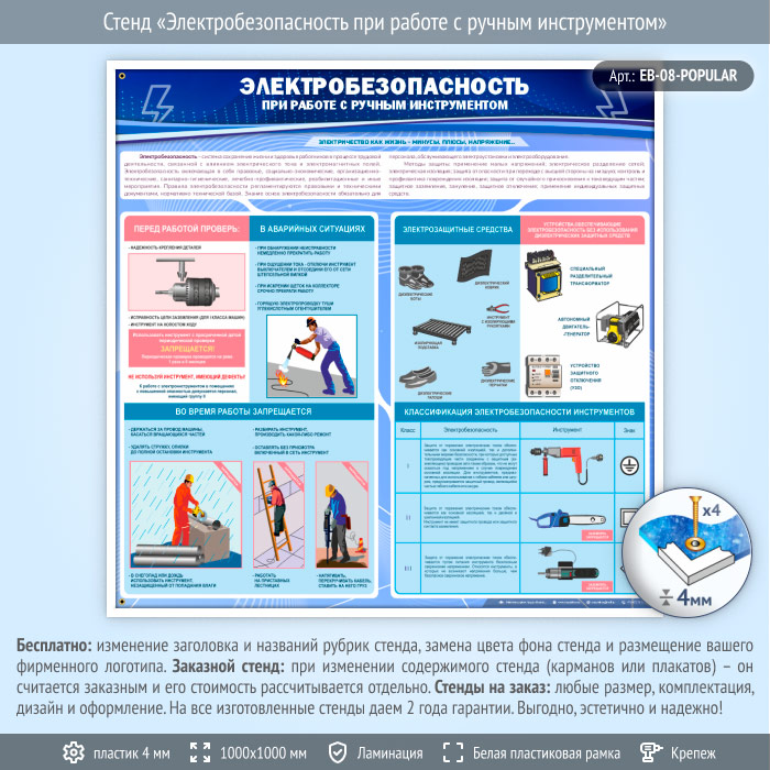 Стенд «Электробезопасность при работе с ручным инструментом» (EB-08-POPULAR) в Новокузнецке купить