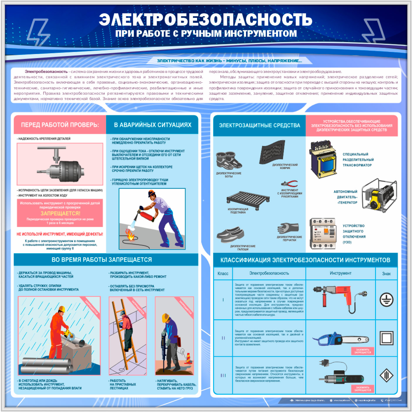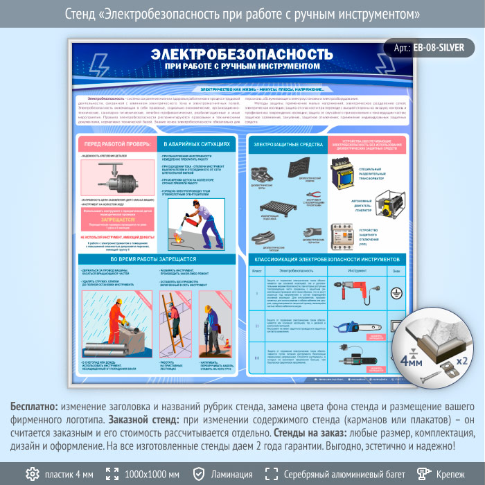 Стенд «Электробезопасность при работе с ручным инструментом» (EB-08-SILVER) в Новокузнецке купить