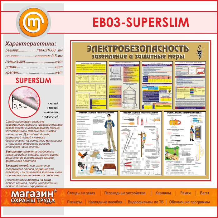 Стенд «Электробезопасность. Заземление и защитные меры» (EB-03-SUPERSLIM) в Новокузнецке купить