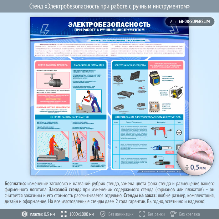 Стенд «Электробезопасность при работе с ручным инструментом» (EB-08-SUPERSLIM) в Новокузнецке купить