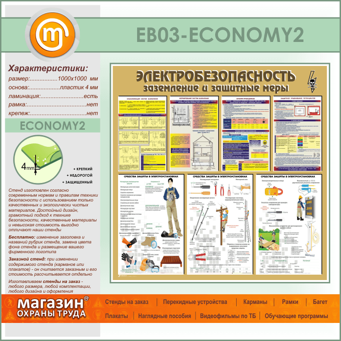 Стенд «Электробезопасность. Заземление и защитные меры» (EB-03-ECONOMY2) в Новокузнецке купить