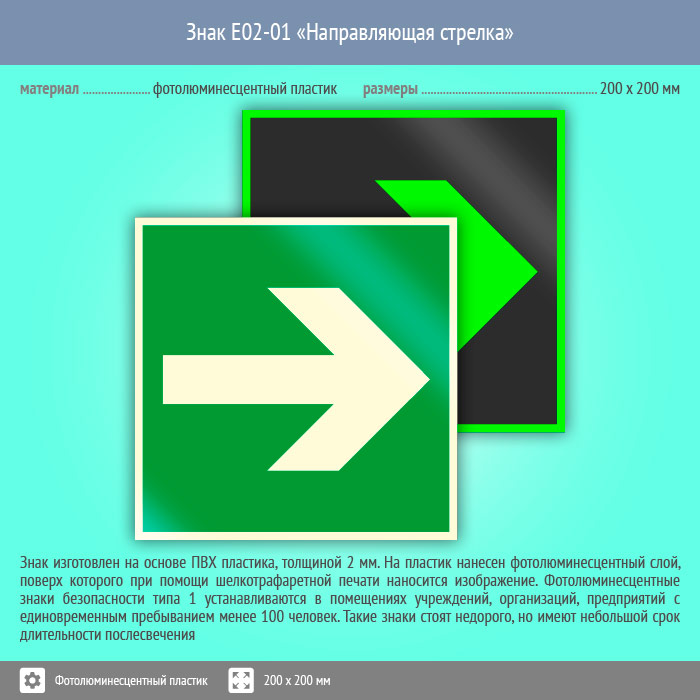 Знак E02-01 «Направляющая стрелка» (фотолюминесцентный пластик, 200х200 мм) в Новокузнецке купить