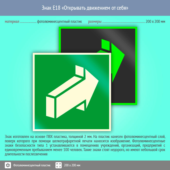 Знак E18 «Открывать движением от себя» (фотолюминесцентный пластик, 200х200 мм) в Новокузнецке купить