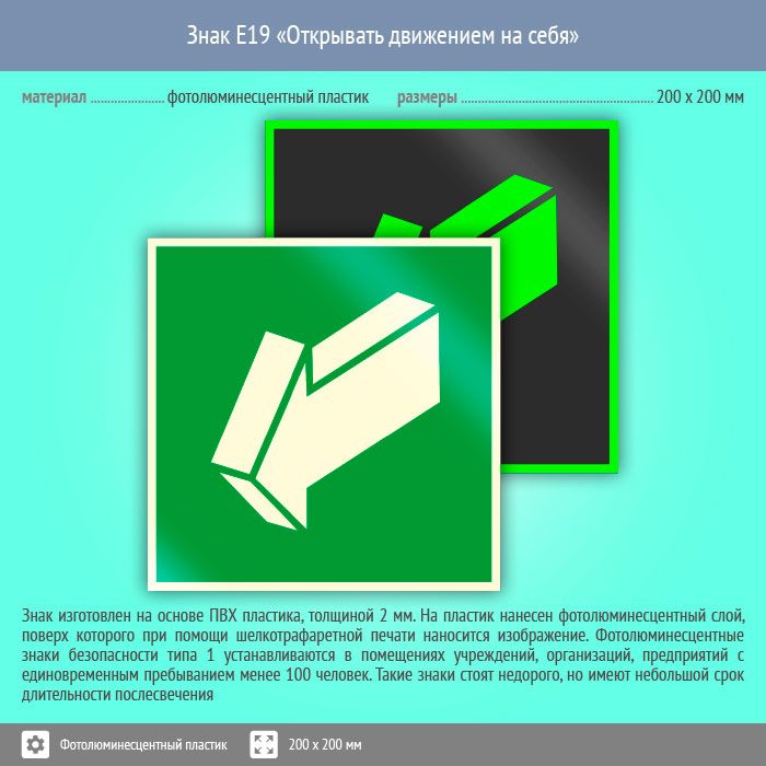 Знак E19 «Открывать движением на себя» (фотолюминесцентный пластик, 200х200 мм) в Новокузнецке купить