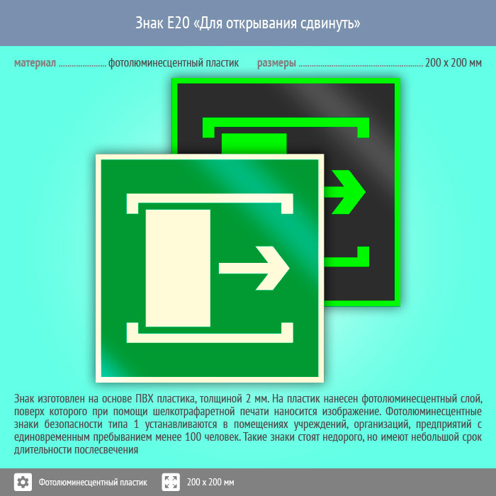 Знак E20 «Для открывания сдвинуть» (фотолюминесцентный пластик, 200х200 мм) в Новокузнецке купить