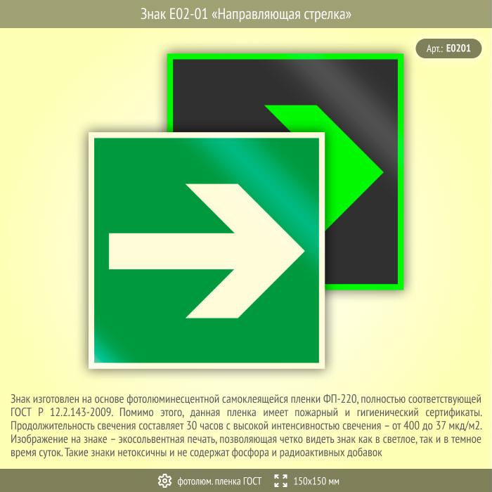 Знак E02-01 «Направляющая стрелка» (фотолюминесцентная пленка ГОСТ 34428-2018, 150х150 мм) в Новокузнецке купить