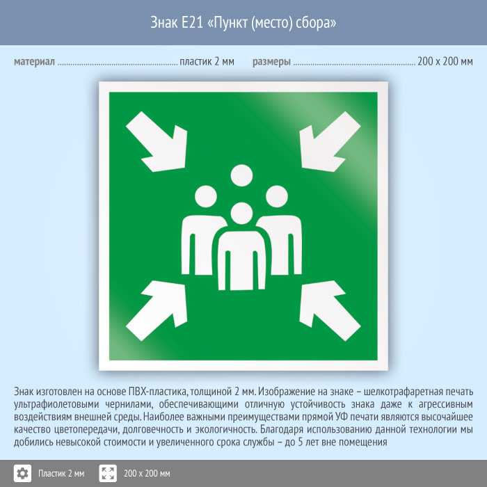 Знак E21 «Пункт (место) сбора» (пластик, 200х200 мм) в Новокузнецке купить