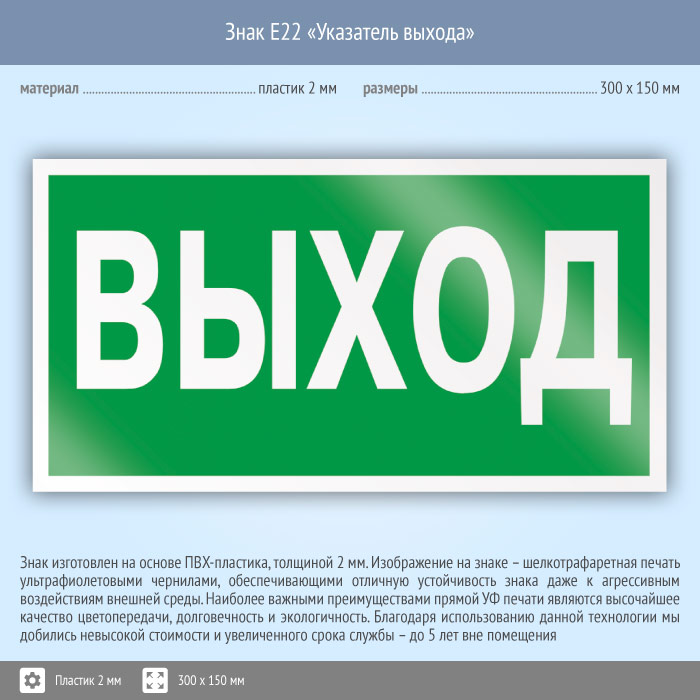Знак E22 «Указатель выхода» (пластик, 300х150 мм) в Новокузнецке купить
