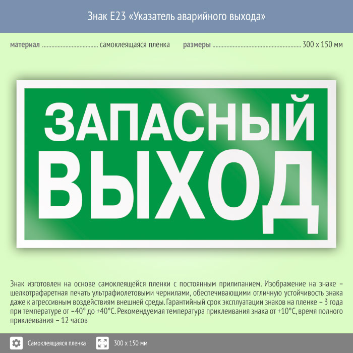 Знак E23 «Указатель запасного выхода» (устаревший) (пленка, 300х150 мм) в Новокузнецке купить