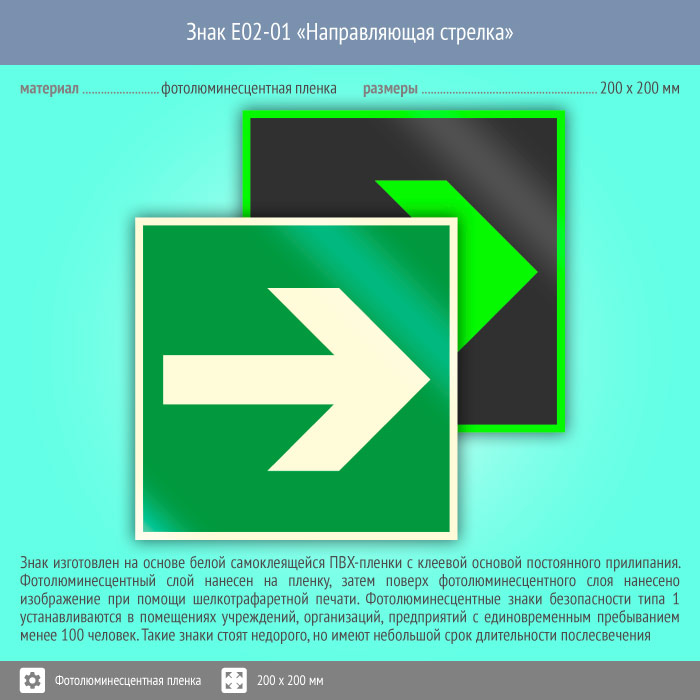 Знак E02-01 «Направляющая стрелка» (фотолюминесцентная пленка, 200х200 мм) в Новокузнецке купить