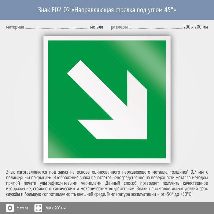 Знак E02-02 «Направляющая стрелка под углом 45°» (металл, 200х200 мм) в Новокузнецке купить
