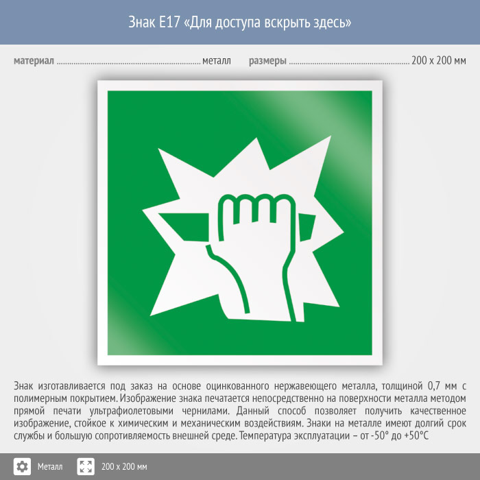 Знак E17 «Для доступа вскрыть здесь» (металл, 200х200 мм) в Новокузнецке купить