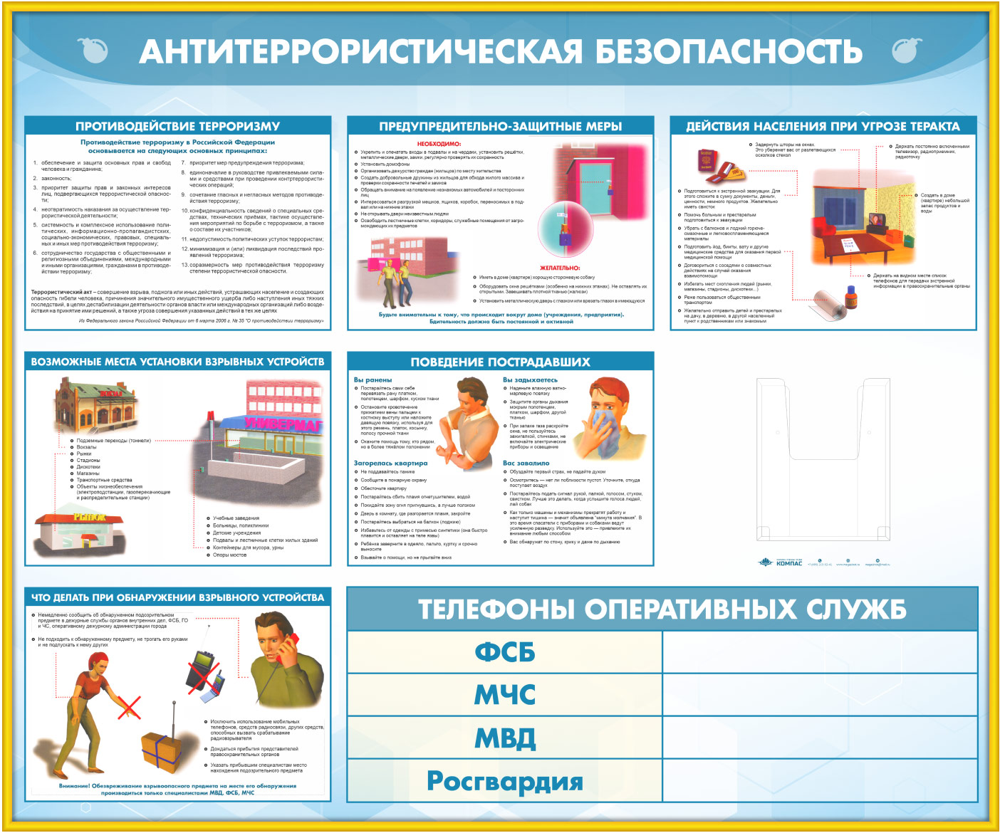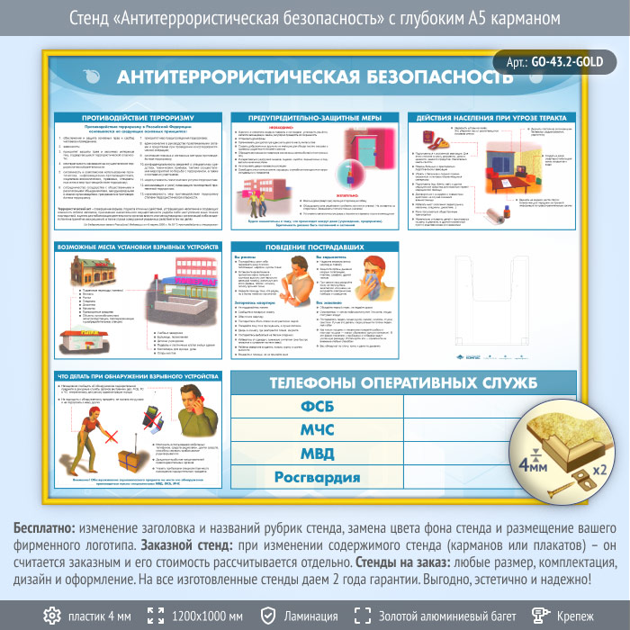 Стенд «Антитеррористическая безопасность» с глубоким А5 карманом (GO-43.2-GOLD) в Новокузнецке купить