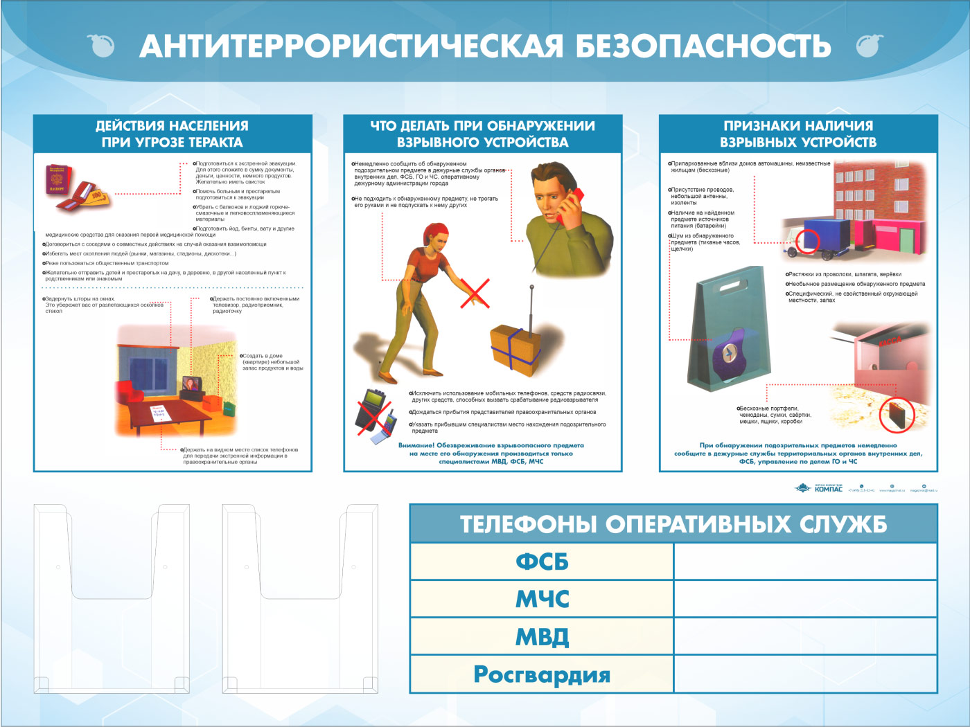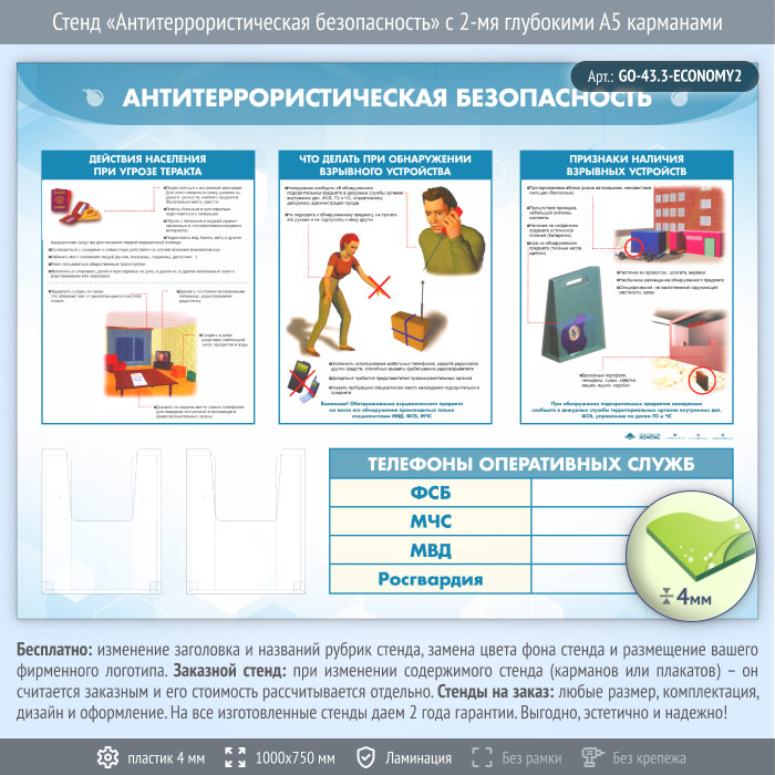Стенд «Антитеррористическая безопасность» с 2-мя глубокими А5 карманами (GO-43.3-ECONOMY2) в Новокузнецке купить