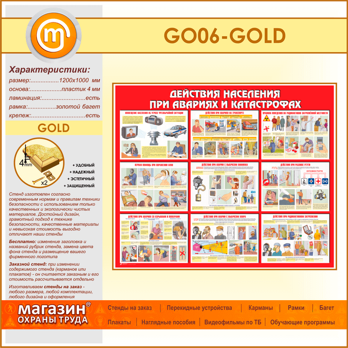 Стенд «Действия населения при авариях и катастрофах» (GO-06-GOLD) в Новокузнецке купить
