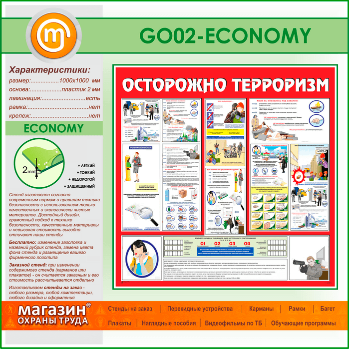 Стенд «Осторожно терроризм!» (GO-02-ECONOMY) в Новокузнецке купить