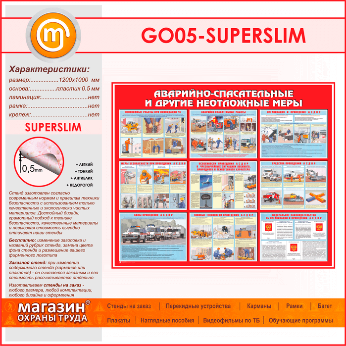 Стенд «Аварийно-спасательные и другие неотложные меры» (GO-05-SUPERSLIM) в Новокузнецке купить