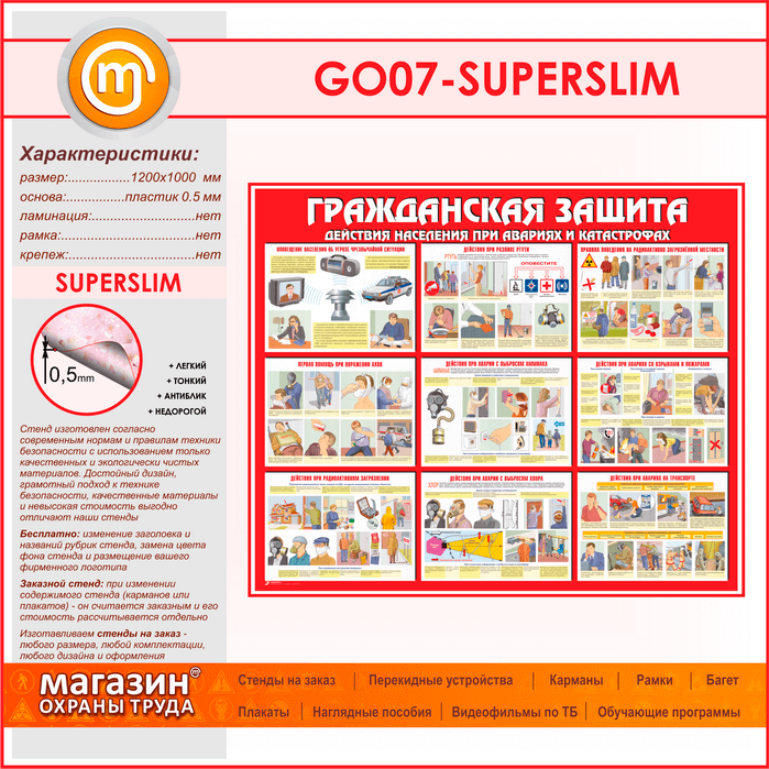 Стенд «Гражданская защита» (GO-07-SUPERSLIM) в Новокузнецке купить