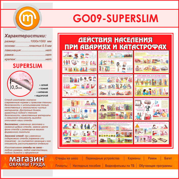 Стенд «Действия населения при авариях и катастрофах» (GO-09-SUPERSLIM) в Новокузнецке купить
