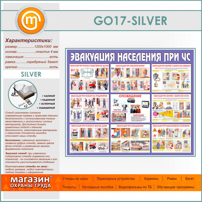 Стенд «Эвакуация населения при ЧС» (GO-17-SILVER) в Новокузнецке купить
